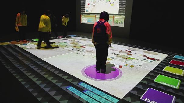 地面互動投影系統采用懸掛在頂部的投影設備把影像效果投射到地面,當參訪者走至投影區域時,通過系統識別,參訪者可以直接使用雙腳或動作與投影幕上的虛擬場景進行交互,各種 ……